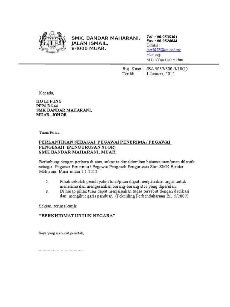Contoh Surat Lantikan Pegawai Pengurusan Aset Dan Stor Oleh Ketua Jabatan Pdf